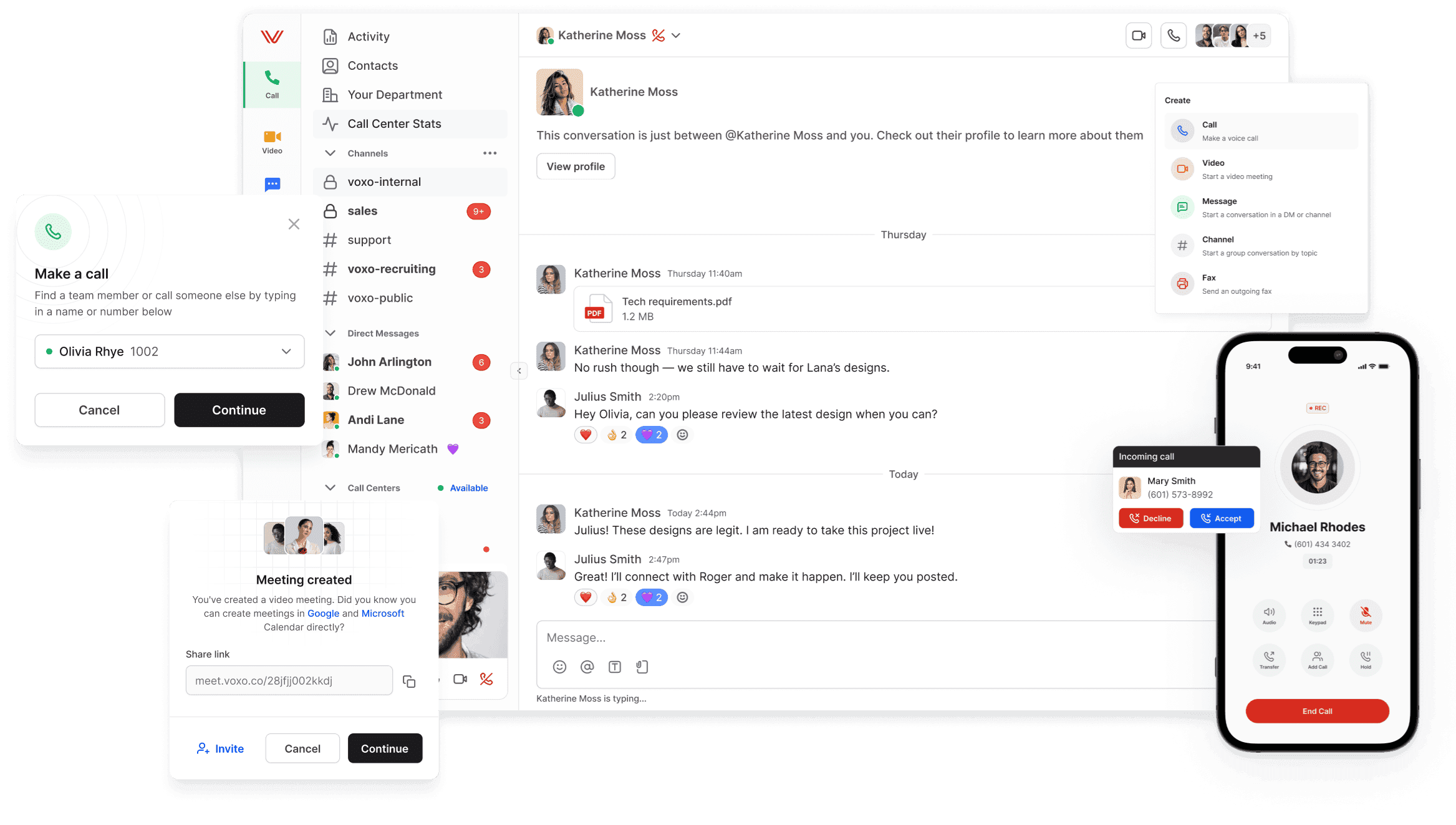 Enable teams to collaborate in realtime with group chats, file sharing, and direct messages.